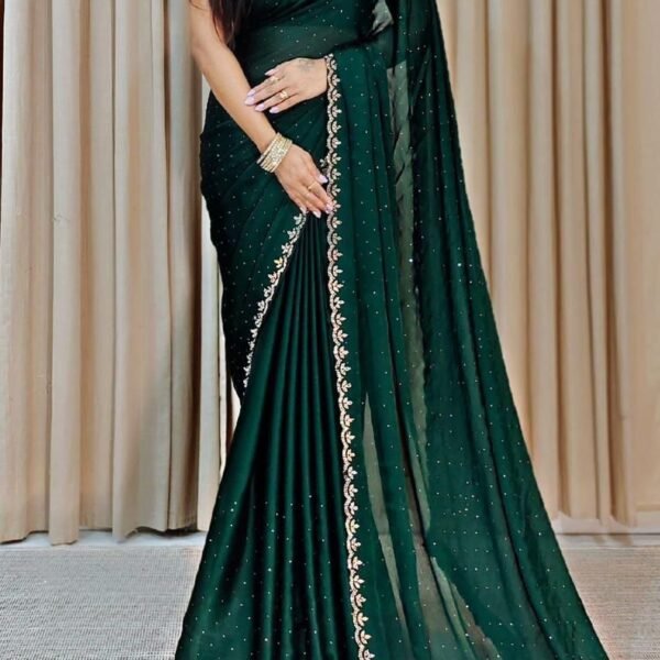 Chinon Creap saree With Cut Work Jarkan Dimound Running Blouse