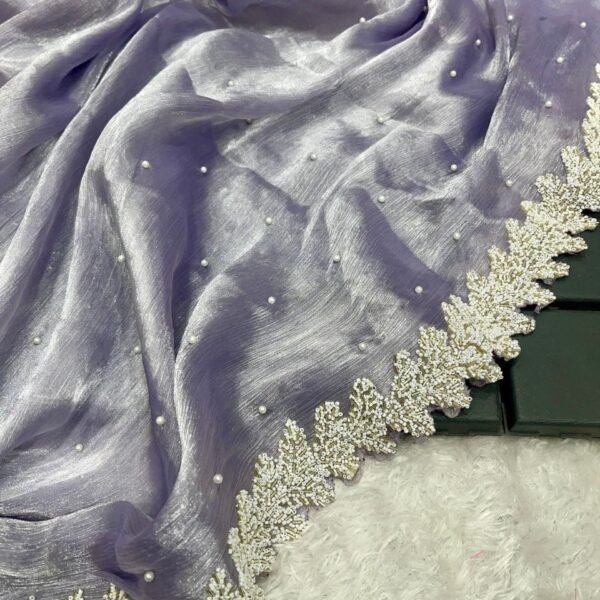 Barberry Chiffon Saree Moti Handwork Lace Border With Running Blouse Ready Stock Available