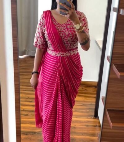 WORK :- Beautiful digital print design with lace work and Ready to Wear saree.
